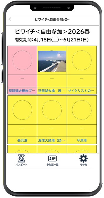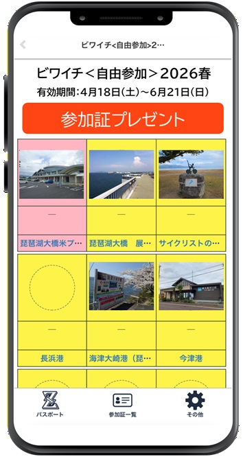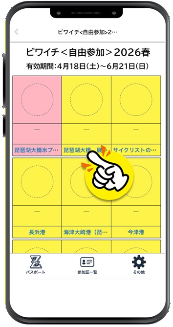 →ビワイチ<自由参加>2026春 をタップするとスタンプシートが開きます。