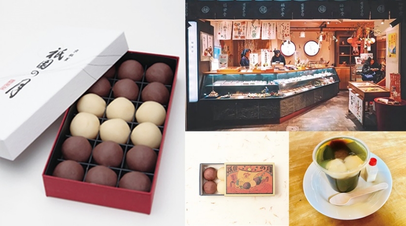 「福栄堂」は祇園の老舗京菓子店です。代表銘菓「祇園の月」は赤あんと白あんの2色の団子で、最高品質の十勝小豆特赤、備中白小豆を使った上品な味わいが楽しめます。