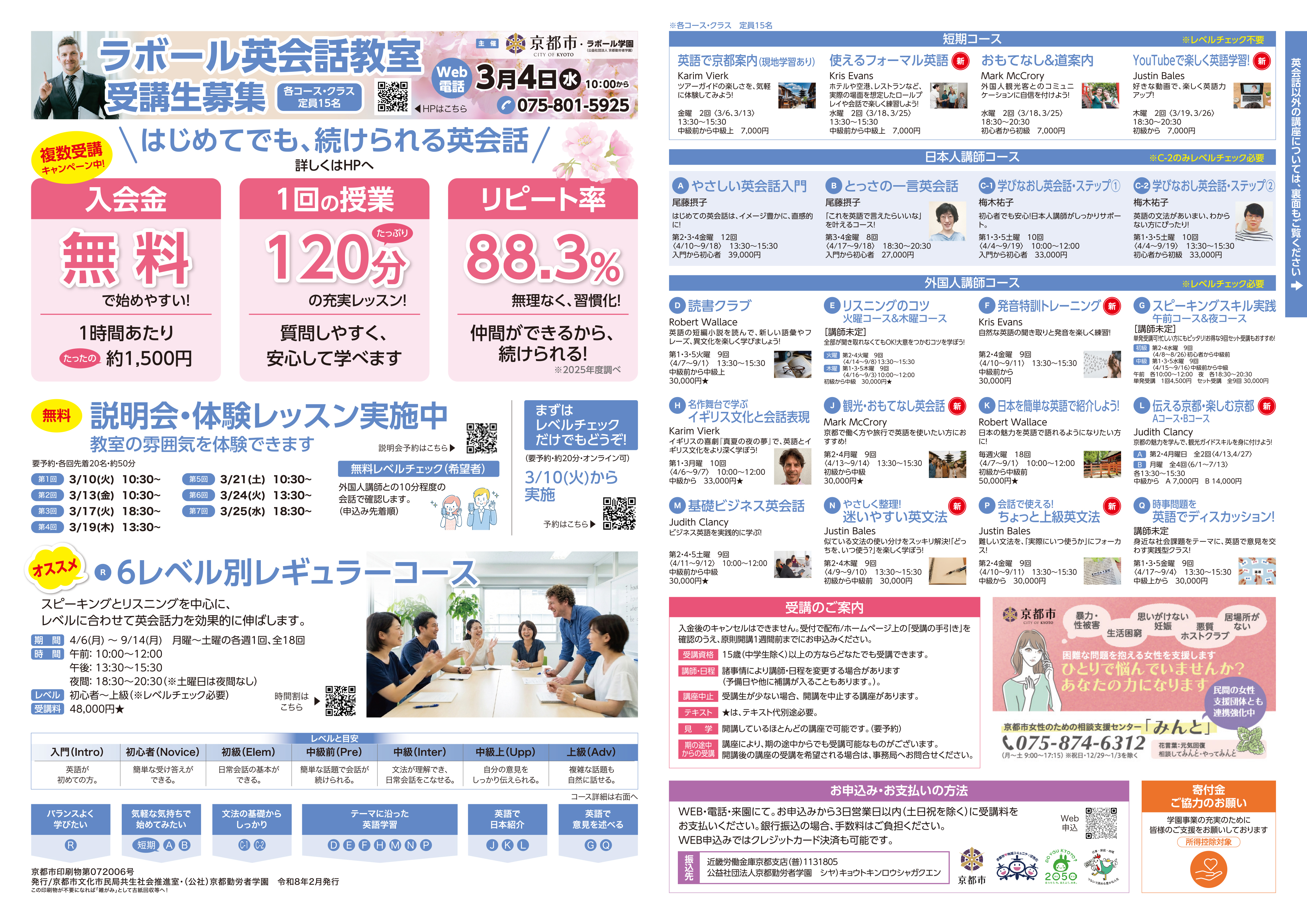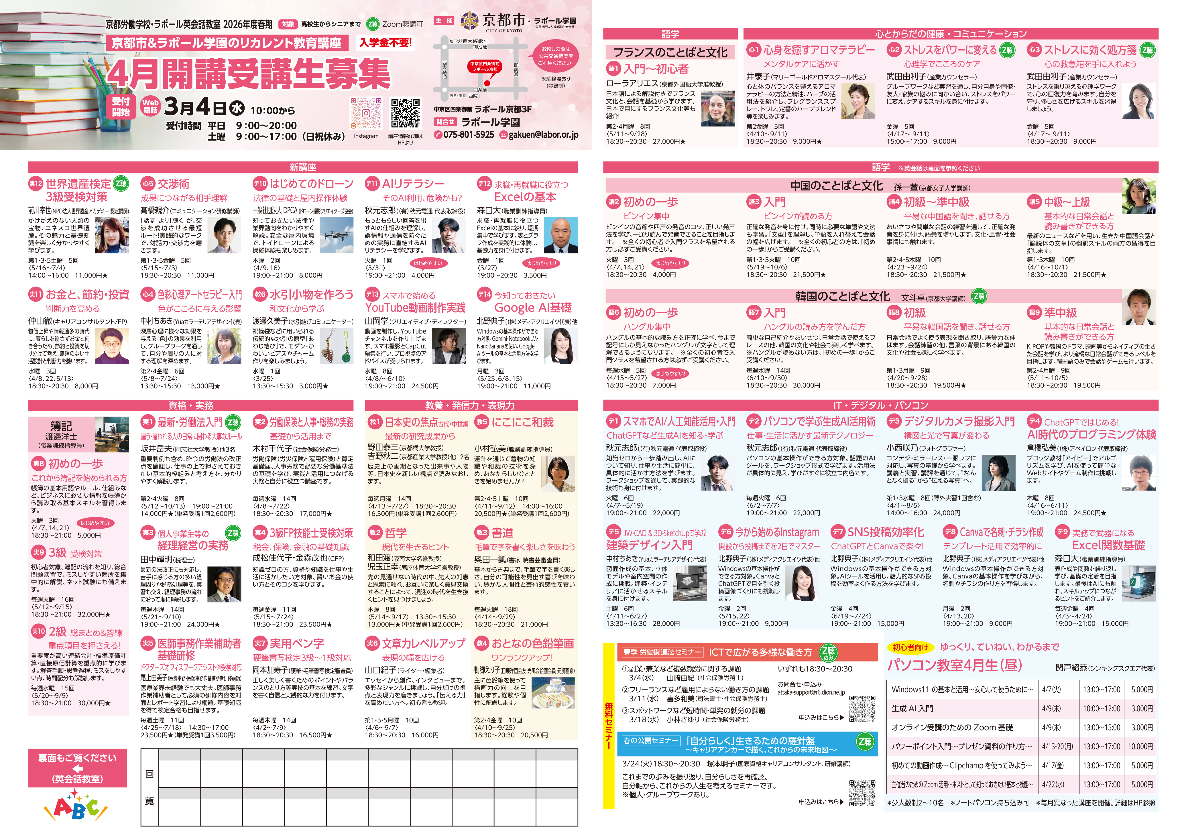 京都労働学校|4~6月開講受講生募集裏
