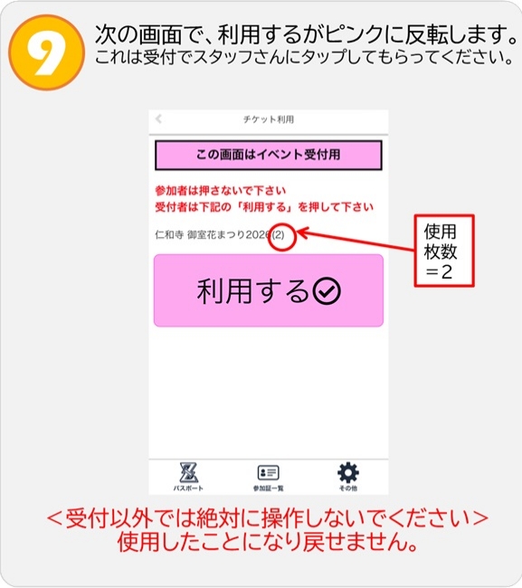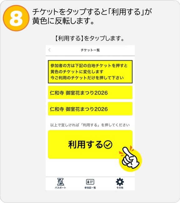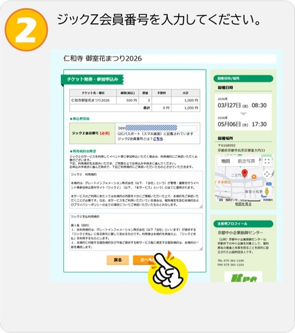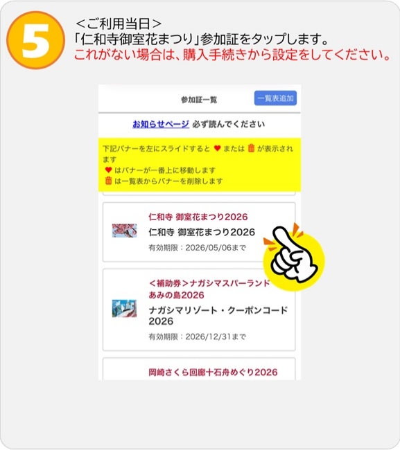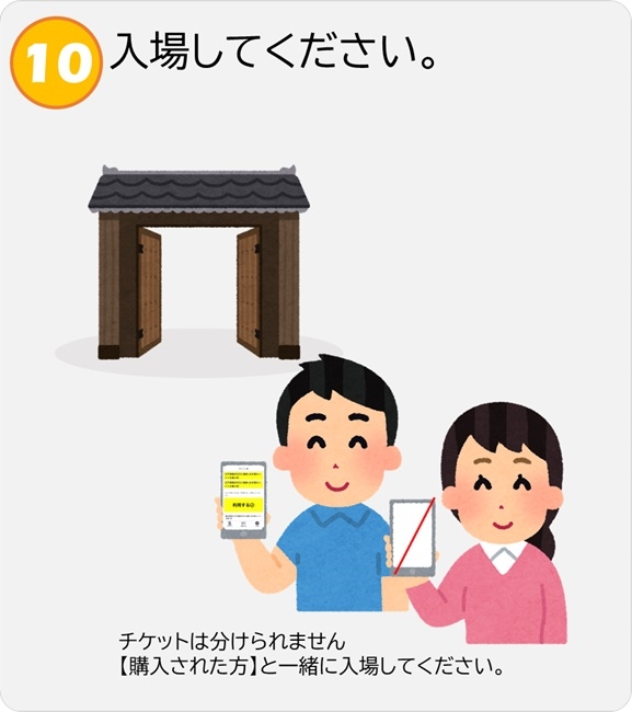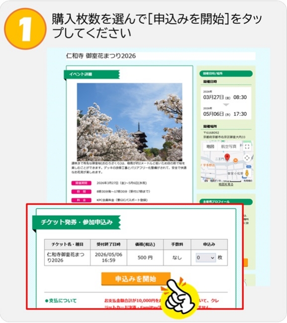 仁和寺内 二王門横券売所に「事前予約レーン」があります。紙のチケットはもぎりされます。スマホチケットは、スマートフォンにチケットを表示させてお並びください。